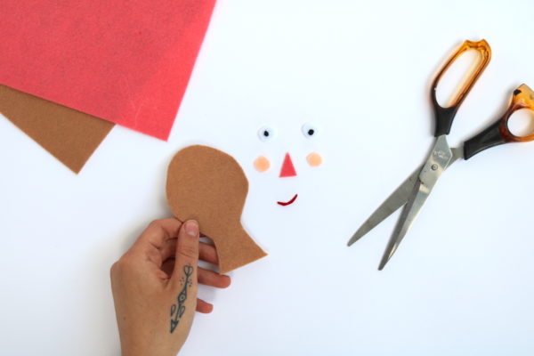 Each felt artist we made started with 2 eyes, 1 nose, 1 mouth and 2 cheeks glued down onto a head shape. You can use this formula to make any character you like!