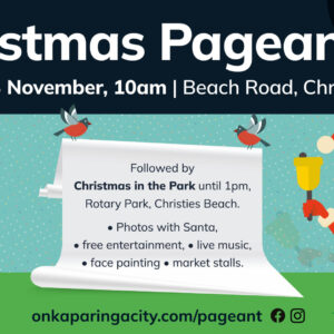 2025 City of Onkaparinga Christmas Pageant We're thrilled to announce that the beloved City of Onkaparinga ... 23 Nov 10:00 am - 1:00 pm Beach Road, Christies Beach, South Australia 5165